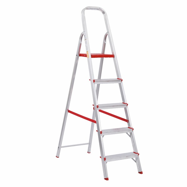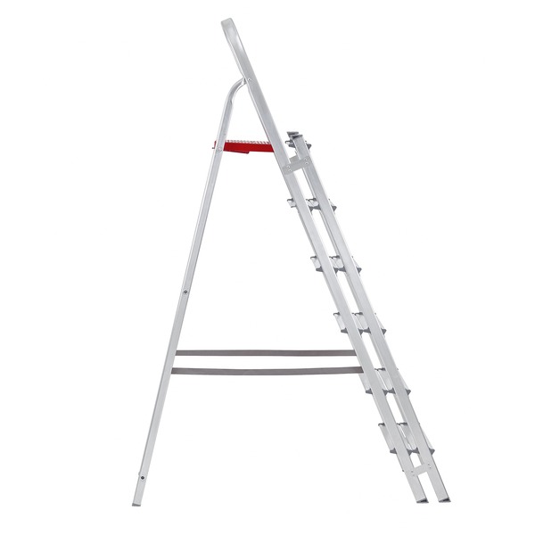 Escada Alumínio 5 Degraus 1,53m 120kg Prata e Vermelho Reisam