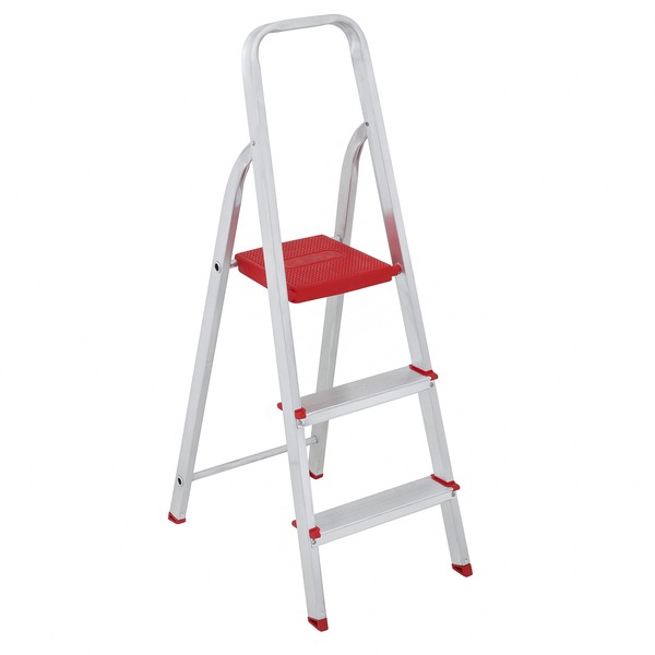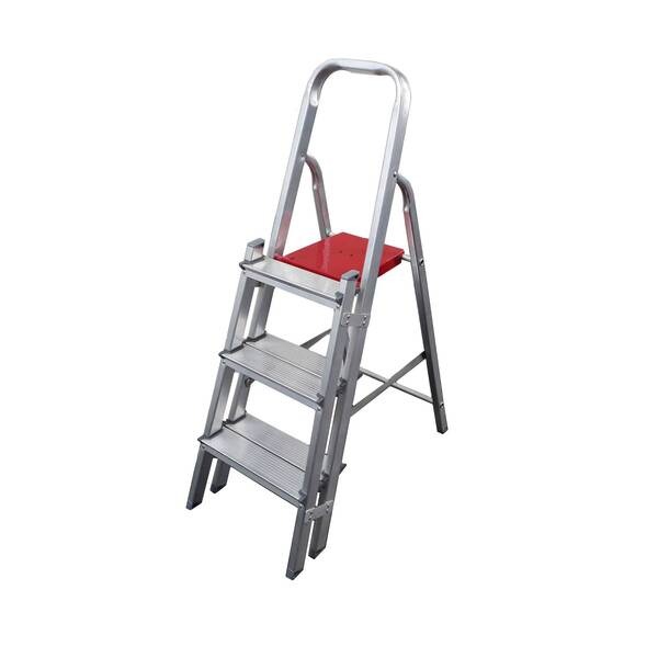 Escada Alumínio 3 Degraus 1,08m 120kg Prata e Vermelho Reisam